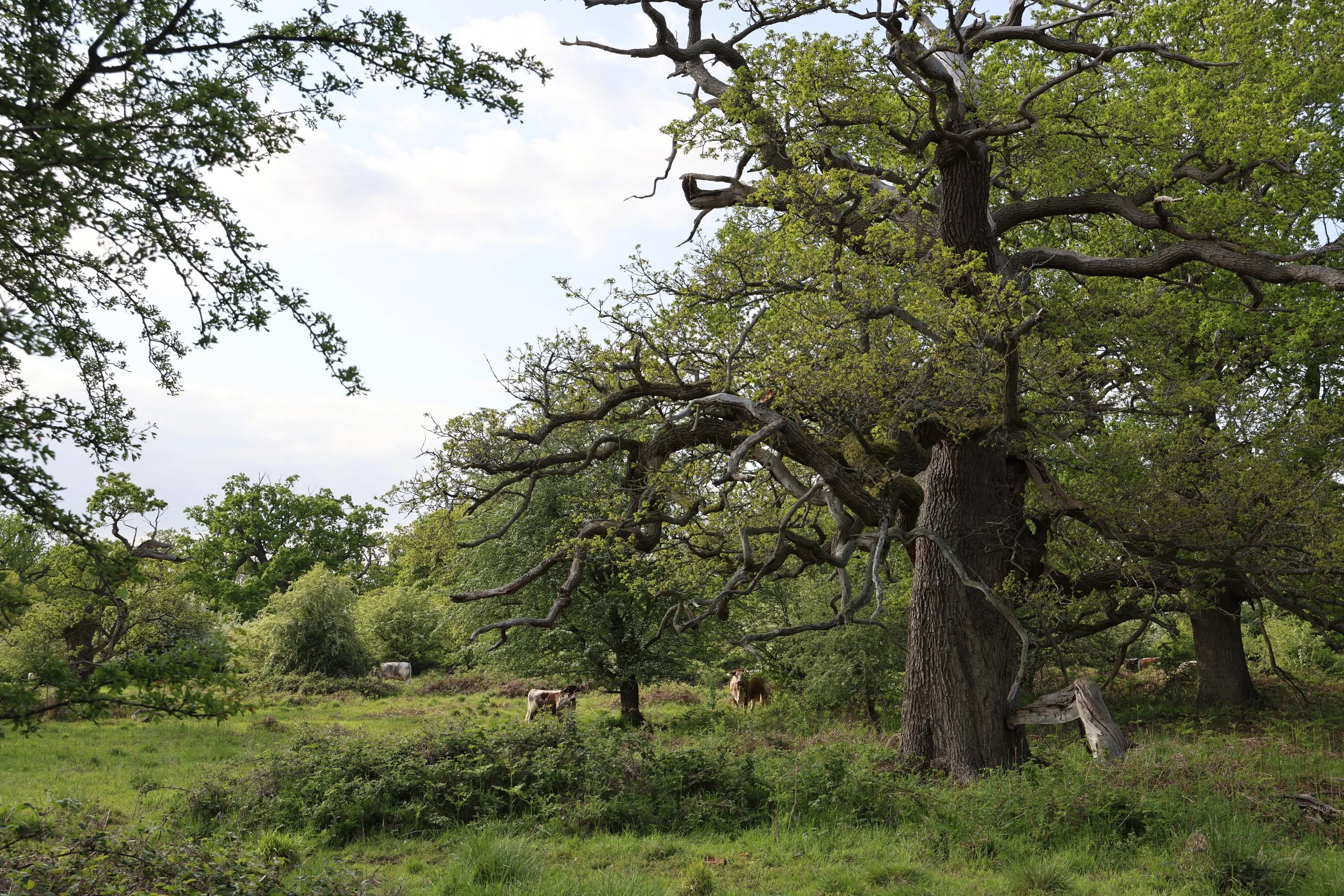 We’re restoring areas of historic parkland and former paddocks into dynamic wood pasture — a rare, biodiverse habitat that blends scattered trees, open grassland, and natural regeneration. We will do this by: